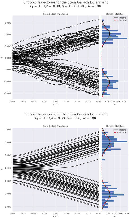 Entropic trajectories for the Stern-Gerlach experiment with and for particles.