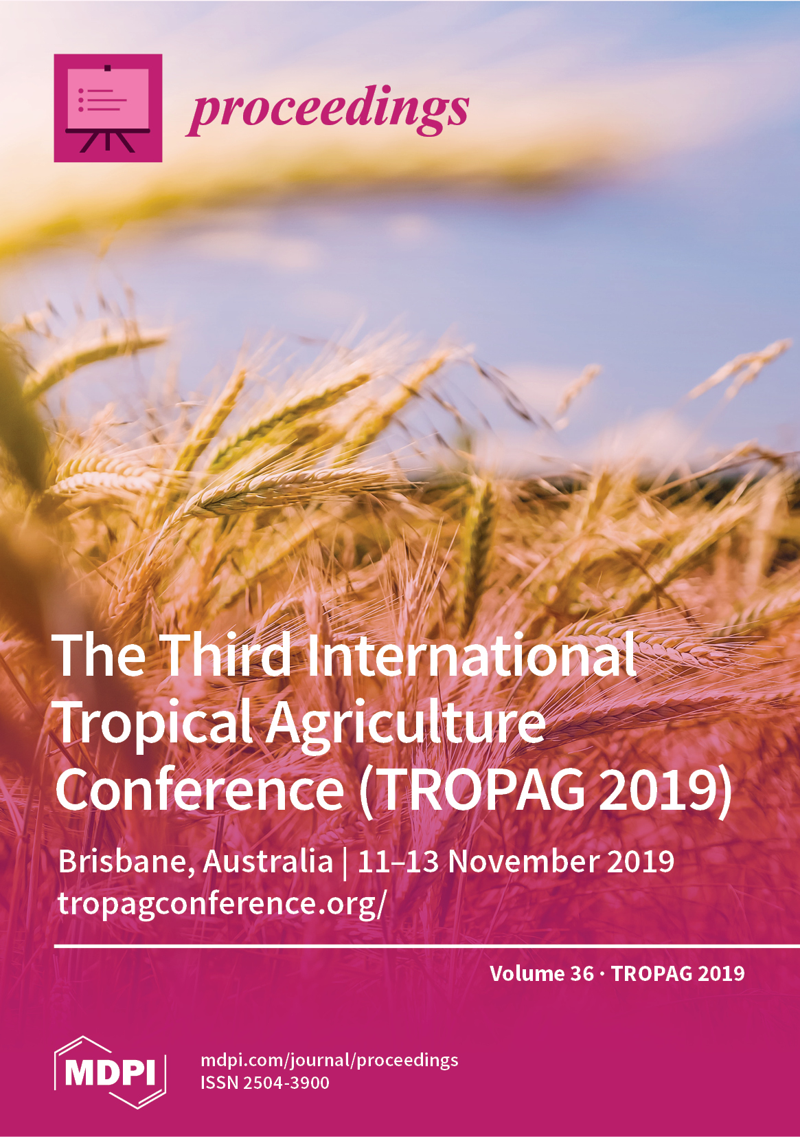 Cover Story: This volume of Proceedings gathers abstracts of posters and symposium presentations that were presented at TropAg 2019. The third international TropAg conference was held on 11–13 November 2019 at the Brisbane Convention and Exhibition Centre. The TropAg 2019 program focused on ‘Shaping the science of tomorrow’ and included five program themes across field crops, horticulture, livestock, nutritious food and an AgFutures stream focused on technology and investment. The three-day conference attracted 820 delegates, including researchers, growers, investors, industry, policy makers and agribusiness from 43 different countries. The program celebrated scientific research success stories and discussed how the tropics will address challenges in the future. Over 240 speakers presented during the conference plenary and symposia sessions. There were 281 poster presentations.