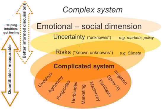 Adapting the nature and extent of agriculture to fit expected increases in food and energy demand, amid changes in climate and the environment, clearly requires the development and application of new scientific approaches and innovative solutions. High productivity is the result of the best combination of management variables that influence crop production in a given field, and the way limited resources e.g. labour, land, finances, are allocated across enterprises and fields at the whole-farm level. Focusing on the yield of individual crops is necessary but insufficient for several reasons. First, larger improvements in productivity are likely from interventions at scales beyond the crop or the field, i.e. the farming system, the farm, and their operating environment. Second, changes in the yield of individual crops might not reflect the fact that farmers manage the farm and resources to satisfy a number of usually competing objectives: livelihoods, returns, lifestyle, environmental outputs, rather than just increasing crop yields. This is important as changes in one enterprise at any point in time will limit options spatially across the farm e.g. due to land, labour or machinery constraints; and temporally across seasons e.g. due to follow-on implications on soil water and nutrients availability, or the need for breaks for pests or diseases between successive crops. Thus, when the analysis is removed from the farm business context, the disconnect between the more technical issues, e.g. choosing a cultivar or a particular rate of fertilisation, and the final decision made on the farm, can conspire against understanding why an individual piece of technology is not adopted, or why apparently a “sub-optimal” decision is finally made. Recognising that farmers grow crops in cropping systems, that they usually manage limited resources and that those resources need to be allocated to satisfy their multiple objectives across a number of alternative enterprises is the first step in understanding where the opportunities for improvement may lie. Farms are complex systems (