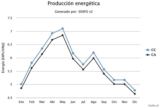 Using the free platform SISIFO which can simulate a solar panel considering a photovoltaic system. For this simulation the energy production of silicon solar panels was considered during a solar year (Figure 1). It is observed that the generation of energy is on average of 12 kWh bimonthly, our demand per household is 285.5 KW, for this reason, a solar collector is enough in a home to mitigate its electricity consumption.