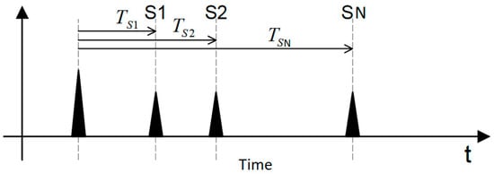 Schematic visualization of acoustic arrival times on a set of sensors (S1, S2, …, SN) [].