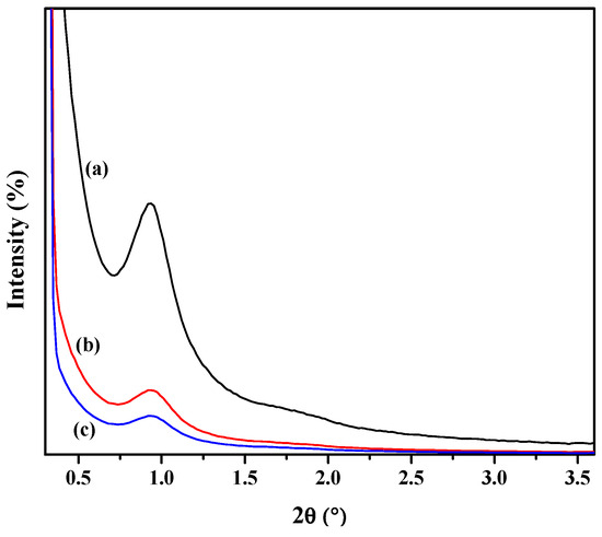 Small angle X-ray scattering patterns of (a) MA, (b) BiVA-MA, (c) BiEG-MA.