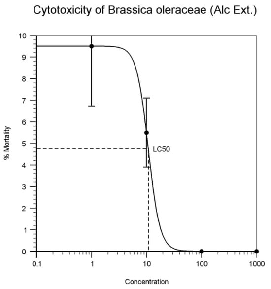 Cytotoxicity of Brassica oleraceae (Alcoholic extract).