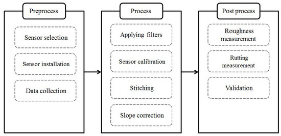 Image processing techniques consist of four steps, including applying filters, sensor calibration, stitching images, and slope correction. Each of these steps will be discussed in detail in the following sections.