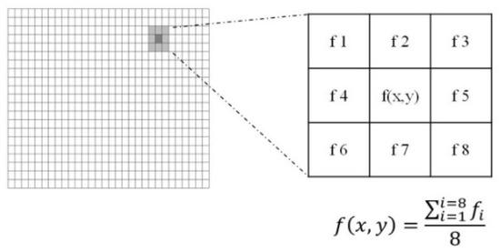 To smooth the collected images and reduce the noise level, a low pass filter (mean filter), as it is visualized in