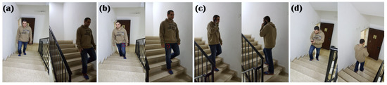 Smartphone modes illustrations. Total of eight different smartphone modes divided to four main groups: (a) Phone in hand, (b) phone in pocket, (c) walking while talking on the phone, and (d) walking while texting.