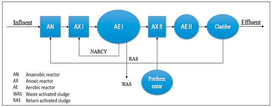 Many studies have suggested that the driving force of EBPR is volatile fatty acids (VFAs), which can be produced through the fermentation process [6,7,8]. For example, a sequencing batch reactor (SBR) experiment failed to provide biological nutrient removal due to the lack of VFAs. However, after adding prefermenters to the SBR system, 99% removal of nitrogen and phosphorus was achieved [9]. Another study to investigate the effect of prefermentation on wastewater nutrient removal was done on a pilot-scale UCT process in Singapore. The results showed better denitrification after starting the process prefermentation [4].