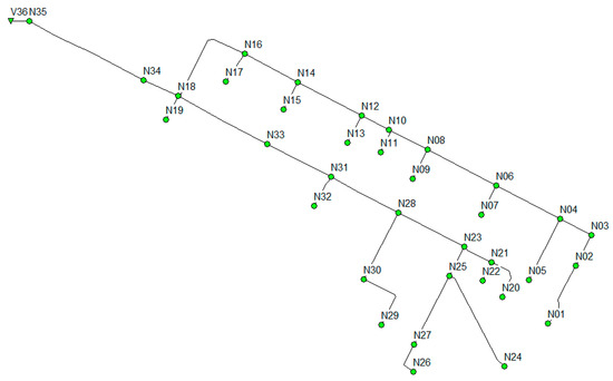 Finally, another type of DV is the head loss coefficient introduced in certain network pipes. The use of hydraulic controls has been mentioned in previous works as a tool to limit the flow of water [10,11,12,16,17] retaining the upstream flow, which causes the water concentration time below to be smaller, reducing flooding. In this work the inclusion of a minor head loss that is installed in the initial part of the pipes that come out of STs will be used as hydraulic control. A minor head loss is caused by a rapid change in magnitude or direction of velocity, which may appear in curves, contractions or extensions in the geometry of the pipe.