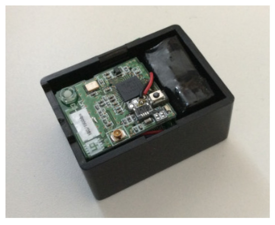 We conducted measurement experiments using ground reaction force and a wearable sensor system. The participants gave informed consent before the experiment. The analysis using ground reaction force was conducted in running conditions at constant belt speed, low target load (10 N), and medium target load (30 N). Motion analysis using the wearable sensor system was conducted in gait conditions of low target load, medium target load, and high target load. The wearable sensor system used an inertial and magnetic field sensor system (Wireless motion sensor, Logical Product, Fukuoka, Japan). The sensor system is shown in Figure 3. The measurement time was 30 s. The sampling frequency was 1 kHz. In the measurement experiment of running conditions, a participant traveled on the treadmill at a specified speed (about 10 km/h), and the participant was fixed and towed using a lumber belt. In the gait analysis condition, a participant wearing the wearable sensor system walked on the treadmill in a specified load condition (10, 30, and 70 N), and the participant held hand rails in the gait measurement. The wearable sensors were attached to the femur, lower thigh, and foot.
