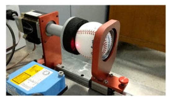 The surface profile of the baseballs was measured with a non-contact laser profiler (as shown in Figure 4). Seam height was taken from the difference of the ball peak radius at the seam and the radius of the panel adjacent to the seam. For each ball, seam height was taken from the average of 32 measurements.