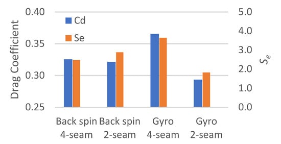 Figure 8 compares the drag coefficient and seam exposure index for each orientation. A strong correlation was observed between Se and the average drag coefficient for each spin orientation. The results show that the location of the seam in the airflow plays an important role in understanding its effects on drag.