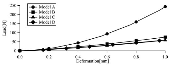 Relationships between deformation and load (Strain rate = 10%/s).