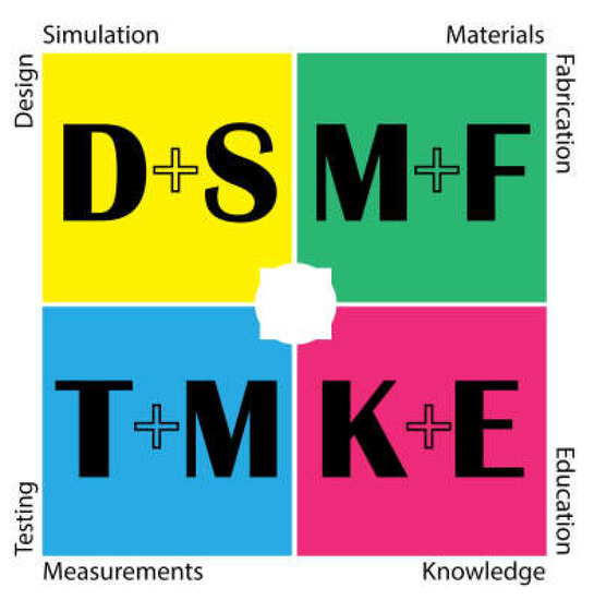 The project has been structured into four main themes: (1) Design and simulation; (2) Materials and fabrication; (3) Testing and measurements; (4) Knowledge and education. These themes are shown in Figure 1 and are outlined in more detail with some examples of preliminary work in the following sections.