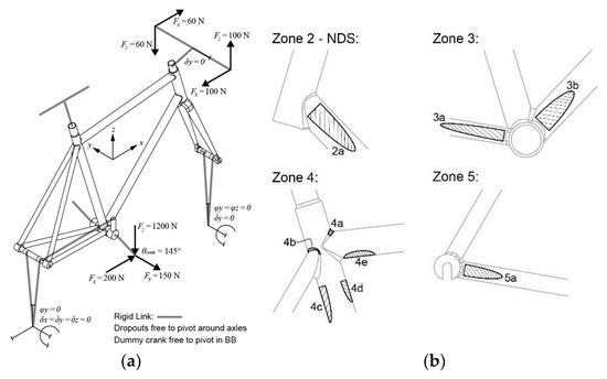 - Covill, D.; Allard, P.; Drouet, J.-M.; Emerson, N. An assessment of bicycle frame behaviour under various load conditions using numerical simulations. Procedia Eng. 2016, 147, 65–670. [Google Scholar] [CrossRef]