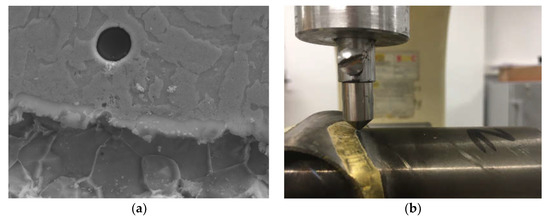 (a) Scanning electron microscopy (SEM) at the bimetallic bond between steel and brass (Cu60%, Zn38%). The strength of this interaction (i.e., the chemical compatibility) will determine the strength of the joint and the minimum fillet size; (b) Tests to determine the hardness in the heat-affected zone (HAZ).