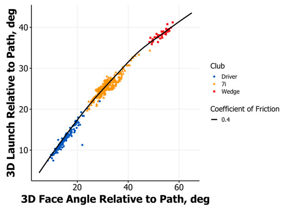 Golf is one of the most popular recreational sports throughout the world, yet the physics governing both the motion of the golf swing and the impact of a golf club with the ball are quite complex. Many research efforts and publications have examined how both the equipment and biomechanical behaviors can influence performance in order to better equip instructors to improve a player’s ability and guide improved club designs [1,2,3,4]. A key element to the game of golf is the ability to control both the direction and distance, the importance of which has been statistically analyzed by Broadie [5]. The speed, orientation, and direction of travel of the club head at impact are the primary elements that determine a ball’s speed, spin, and start direction. For an oblique impact where the club normal direction and club velocity (also referred to as the path) are not collinear, the launch direction of the golf ball will generally lie somewhere between the face normal and club path directions [2]. As a result, players and golf coaches would greatly benefit from understanding the quantified relationship between a club’s delivery and the resulting direction of ball flight. Both Cochran and Stobbs [1] as well as Trackman (published by Dewhurst [4]) have published values quantifying the relationship between the launch angle of a golf ball struck by different clubs and the resulting launch angle. More recently, the current authors also published the results of an experimental study that explored these relationships [6]. Comparing the values published by Trackman and by the current authors differed slightly from each other, so an effort to understand the possible discrepancies along with the underlying physics was initiated.