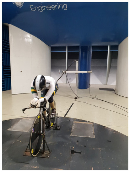 - Fitzgerald, S.; Kelso, R.; Grimshaw, P.; Warr, A. Measurement of the air velocity and turbulence in a simulated track cycling team pursuit race. J. Wind. Eng. Ind. Aerodyn. 2019, 190, 322–330. [Google Scholar] [CrossRef]
