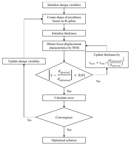 The overall procedure of shape optimization of prosthesis based on force-displacement characteristics.