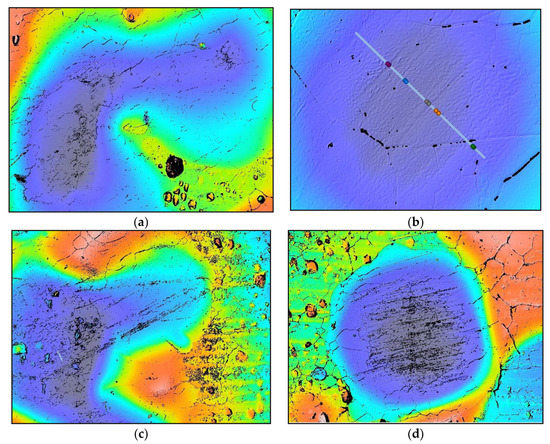After each sample was leveled and any noise was removed, the profile tool was used to select the area requiring measurement. Once the profile was selected, the distance annotation tool was used to measure both the length (width) and height (depth) of the selected area (