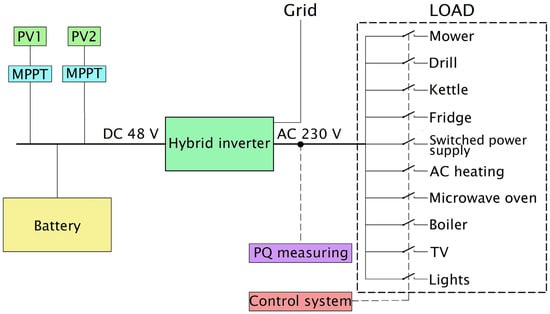 Autonomous energy systems (so called Off-Grid systems) are systems supplied from renewable sources (RESs) and supported by energy storage. Different circumstances need to be considered in such energy source applications, when compared to the standard distribution and transmission systems. The stochastic and unstable character of RES on the part of a source causes the presence of a low short-circuit power, which decreases the stability of power quality (PQ) parameters in the Off-Grid system [1,2]. The frequency (FREQ), voltage disturbance, total harmonic distortion of voltage (THDV) and current (THDC), and flicker severity belong to the most important PQ parameters [3]. It is necessary to keep these parameters within the requested limits to ensure a reliable and safe operation of appliances.