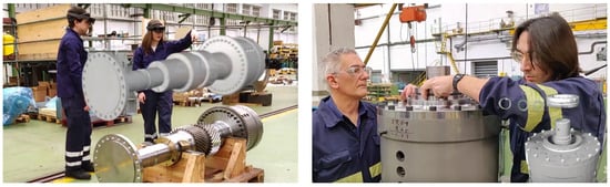 Interaction with the 3D model (left) and assembly process at Navantia’s Turbine workshop (right).