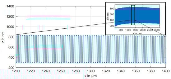 Line scan of 3 mm with a count of 1000 pitches and section (200 µm in length) of the line scan of a calibration sample with the NFM-100 and its mounted AFM system over a range of 3 mm.
