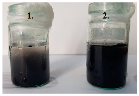 The research focused on analyzing both the MWCNTs obtained by this new method and the functionalized MWCNTs. The major functional groups of the MWCNTs and functionalized MWCNTs were identified by FTIR analysis (Figure 1). Moreover, in order to estimate the functionalization, the same quantity of MWCNTs was dispersed in water, before and after functionalization, for 2 h in an ultrasonic bath and afterwords visually observed to evaluate their suspension stability (Figure 2).