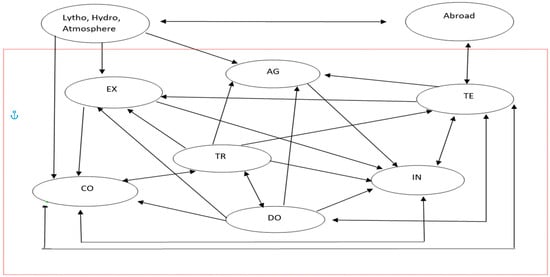 Once the above mentioned 7 sectors have been “assembled” by collecting in each one the relevant and pertinent activities, the next step is to properly identify, describe and quantify the interactions. The proposed model is outlined in Figure 1.