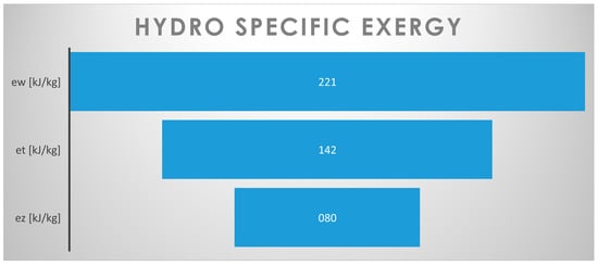Hydraulic specific exergy, potential and thermal contributions.