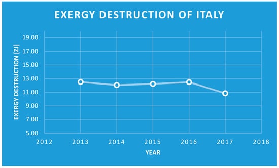 Figure 10. Exergy destruction by Italian society 2013–2017. - (e)