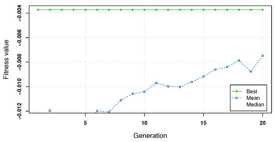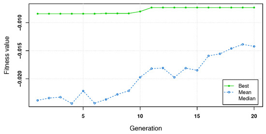 The algorithm searches for the best local minimums (near-optimal solutions) possible. Therefore, for the first case in Figure 5, it is able to reach the best local minimum after ten generations, since the placement starts from scratch. On the other hand, the algorithm is able to find the best possible solution for cases two and three immediately, as seen in Figure 6 and Figure 7, since there is already an existing (but not optimal) setup and a limited number of options. Kindly note that the minus notation in front of the fitness value is used only to instruct the algorithm to search for local minimums and not as a negative value (the fitness values are always non-negative numbers in our approach).