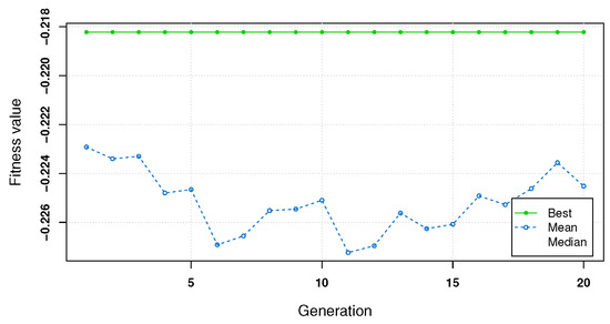 where a is the Pareto weight of the cost function h. A final fitness value below indicates a robust sub-optimal sensor placement, since the genetic algorithm converges to the local minimum(s) that significantly approximate the optimal setup (global minimum).