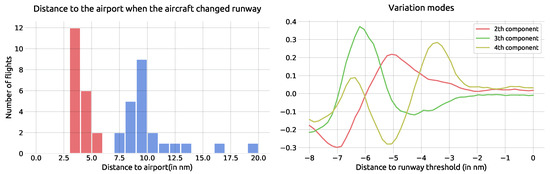 Figure 4 suggests that rule-based methods perform well at detecting runway changes during final approach, between parallel or different bearing runways. In a previous contribution [4], we introduced a Functional Principal Component Analysis (FPCA)-based approach to detect runway changes and assess safety-related contributors for the risk of runway excursion. FPCA is a statistical tool well suited to performing dimensionality reduction through a linear operator of projection.