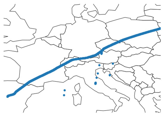 In order to create our large-scale dataset of ADS-B raw data, we used the history database from the online flight tracking network OpenSky [17].These data are collected by cooperative ground stations, and the network is mainly maintained by enthusiastic private individuals. As a result, the quality of the data often depends on the performance of the acquisition material used by the seeders. State vector data are the data from the OpenSky betwork with verifications made and with erroneous messages already filtered out. These data did not really fit our requirement of data that arise directly from sensors with no filters to train models with no bias introduced by uncontrolled data cleaning; nonetheless, some cleaning steps were necessary and are detailed in Section 3.2.