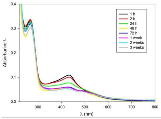 Absorption spectra of samples were recorded in the spectral range of 200–800 nm by means of Jasco V-750 spectrophotometer (Jasco, Tokyo, Japan).