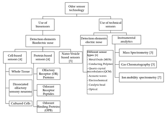 Overview of different technologies for odor detection. Own presentation, based on [3,4,5,6,7].