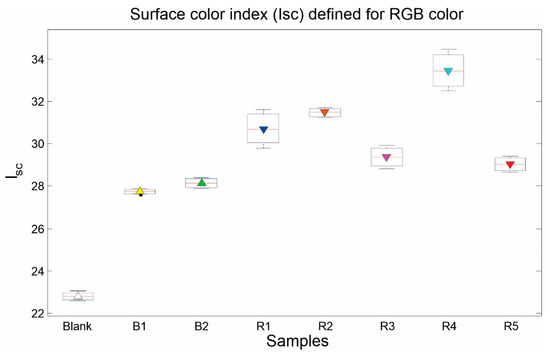 To ensure that the internal lighting conditions do not affect the homogeneity of color (due to shadows or flashing reflections) in the sample, a validation of the homogeneous color distribution was carried out employing the Surface Color Index [41].