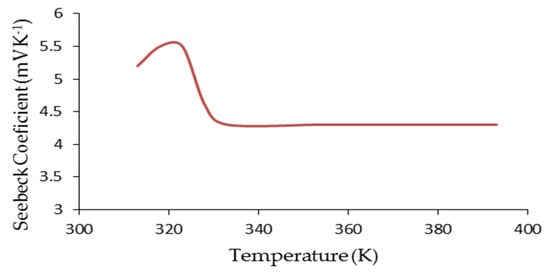 Seebeck coefficient of graphite/mixture/aluminum system as a function of temperature.
