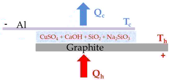For the realization of the thermoelectric generator, the following materials and substances were used: graphite plate, aluminum strip, copper sulfate, sodium silicate solution of 30% concentration, calcium hydroxide, and silicon dioxide.