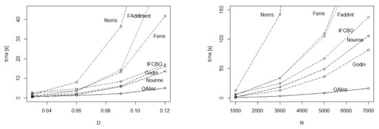 - Piskova, L.; Horvath, T. Comparing Performance of Formal Concept Analysis and Closed Frequent Itemset Mining Algorithms on Real Data. In Proceedings of the CLA 2013, La Rochelle, France, 15–18 October 2013; pp. 299–308. [Google Scholar]