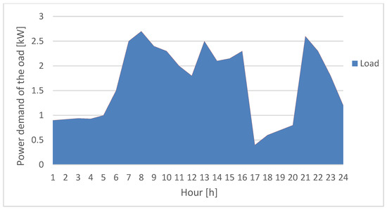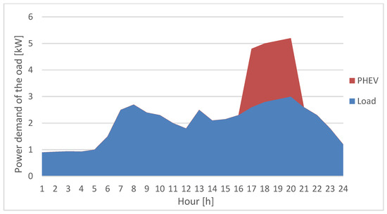 In Figure 3 is presented the power demand of the household appliances, considering that the PHEV supplies power to the household appliances between 17 and 21 (case B). Therefore, the power demand of the load between 17 and 21 is smaller compared with the previous case.