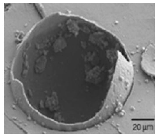 Expansion agents and mineral mixtures—eSEM image showing a broken microcapsule [].