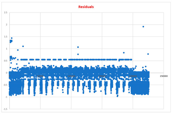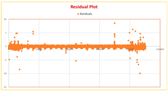 Residual plot obtained for multiple linear regression model for CICIDS 2017 dataset.