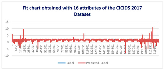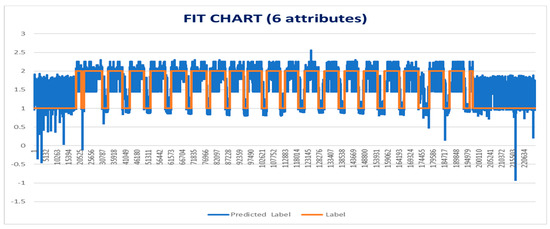 Fit chart obtained for Friday afternoon logfile of CICIDS 2017 dataset by considering 1, 9, 13, 53, 54, and 64 attributes.