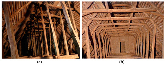 Romanesque roof structures: (a) roof structure Lutheran church in Vurpar; (b) roof structure Lutheran church in Toarcla.