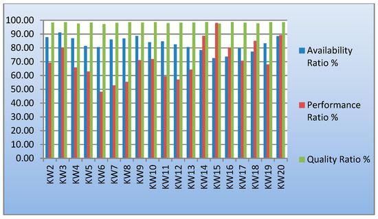 The OEE provides a measurement method that gives a correct perspective of the performance of the equipment. At the same time, the OEE shows where opportunities for improvement can be identified. Thus, this indicator is not only a tool that can compare the performance of one company with that of another company (benchmarking), but also a tool for continuous improvement. The parameters to be followed in the calculation of the OEE are availability, performance, and quality rate. The beauty of the OEE is that it does not provide a magic number, but offers three numbers that are useful and individual as the situation changes from day to day, and helps to visualize performance in simple terms—a very practical simplification [4].