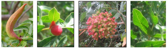 - Wool, D. Aphid-induced galls on pistacia in the natural mediterranean forest of Israel: Which, where, and how many? Israel J. Ecol. Evol. 1995, 41, 591–600. [Google Scholar]