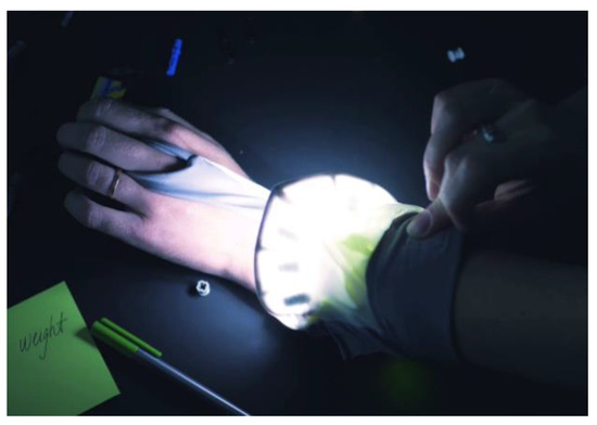 Figure 4c). The cuff could also be rolled up, which resulted in an indirect light effect.