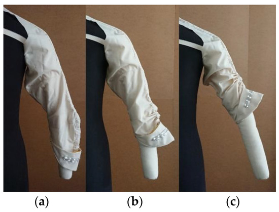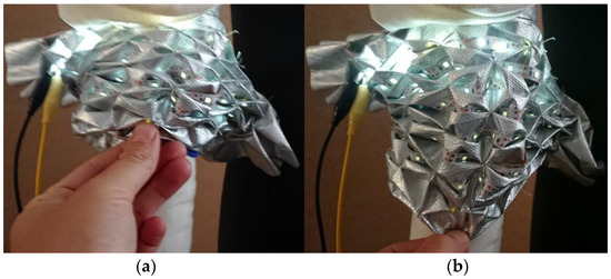 Figure 4a), where the light panel was attached to the cuff. Pulling the cord in the sleeve, the light panel moved upwards along the Z-Shape, changing its direction to upwards (