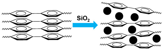 Disorder of the π–π stacking due to the addition of silica nanoparticles.